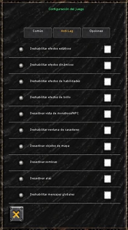 Dentro del juego contamos con un panel el cual su funcion es disminuir graficamente el juego para adaptar los requerimentos necesarios de cada PC. Desde la tecla F7 accederemos al primer menu para desactivar algunos efectos