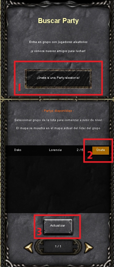 Mediante la tecla P podremos acceder al buscador de party y definir una serie de variables a la hora de encontrar nuestro grupo ideal